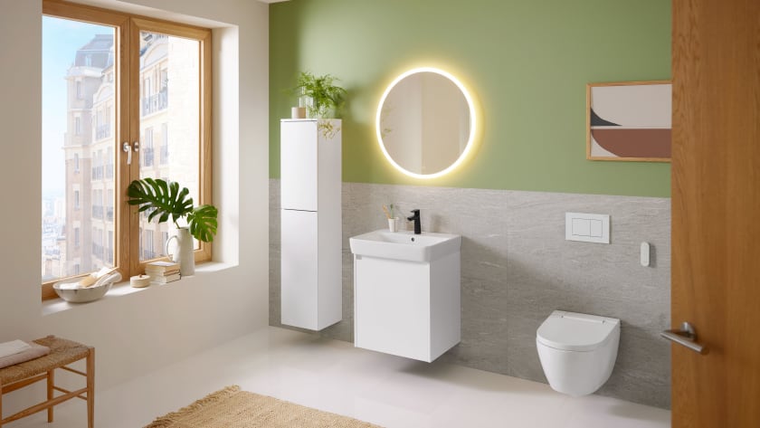 Die unterschiedlichen, klassischen Designs von Geberit Renova fügen sich harmonisch in jeden Raum ein. Dazu kommen viele clevere Lösungen für besondere Anforderungen. Damit wird es ganz einfach und günstig, ein altes Bad in neuem, zeitgemäßem Glanz erstrahlen zu lassen.
